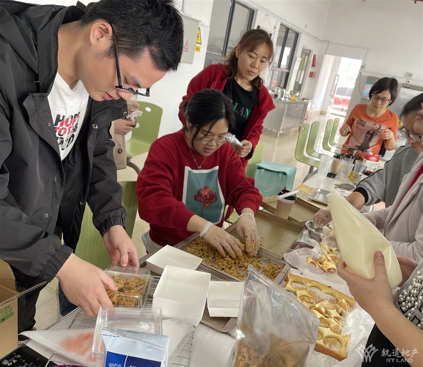 活動現(xiàn)場,由愛好烘焙的同事指導(dǎo)大家制作蛋糕、蛋撻、肉松小貝、雪媚娘、珍珠奶茶等美食,有“斤斤計較”分配食材的、有“認認真真”研究烤制時間的、有“切切察察”切分水果的……一番忙碌之后,一個個美觀、美味的蛋糕、蛋撻等陸續(xù)呈現(xiàn)在大家的面前。整個活動現(xiàn)場彌漫著濃郁的香甜氣味,大家品嘗著自己的勞動成果,洋溢著陣陣的歡聲笑語,充滿著快樂和幸福的味道。